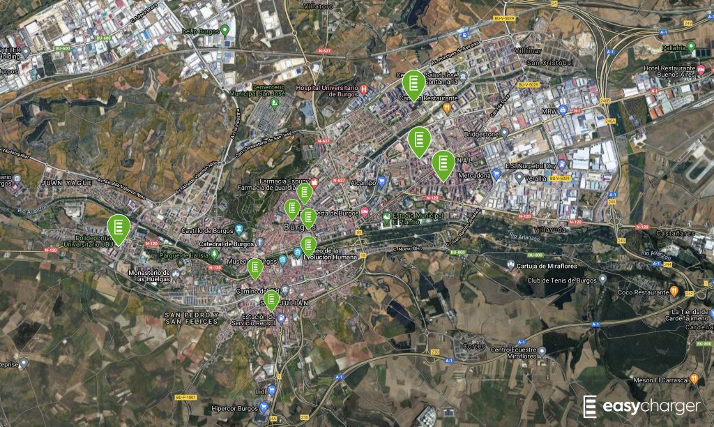 Ubicaciones donde EasyCharger instalará los 40 puntos de carga en Burgos