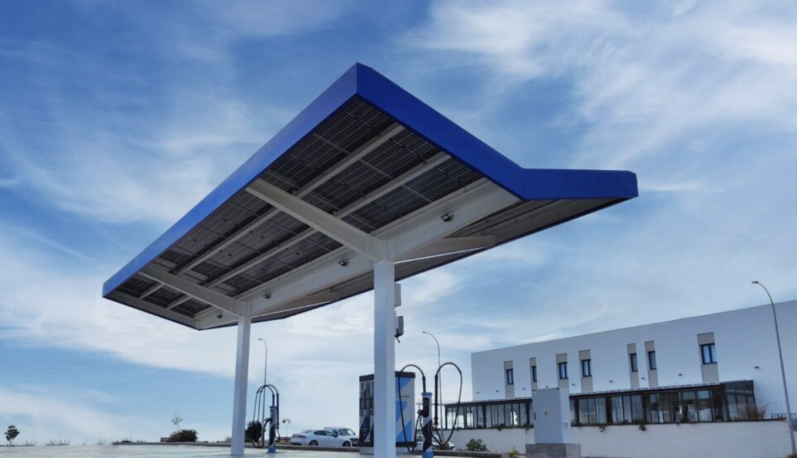 Estamos completamente seguros de que esta Estación de Carga os va a encantar. Como podrás ver en las fotos, se trata de una Estación de Carga Ultra-rápida que incluye nuestra característica marquesina fotovoltaica que nos permite recoger y transformar la energía solar en electricidad para cargar vehículos eléctricos. Además, nos permite proteger tanto a los usuarios como a sus vehículos eléctricos de las inclemencias meteorológicas.