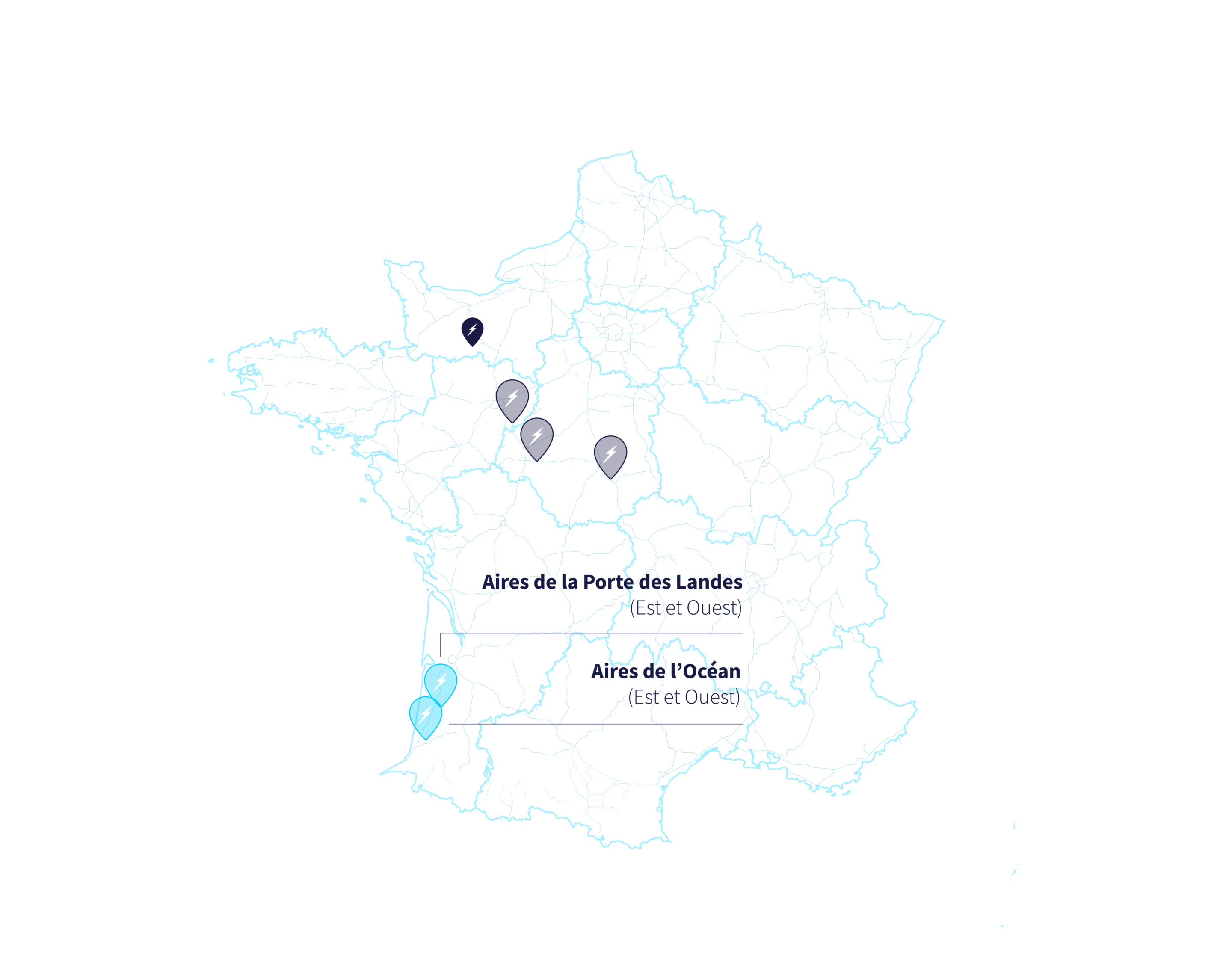 - Aire de l’Océan (Ouest) : en direction de l’Espagne.