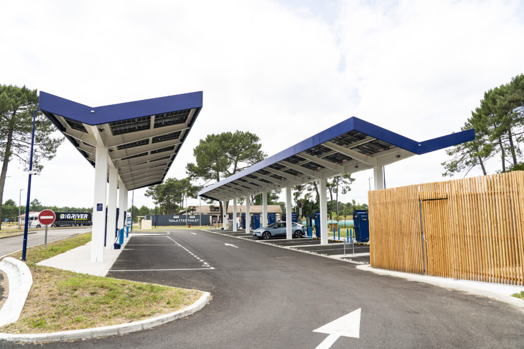 La station étant située sur une aire de service, vous n’aurez pas à changer votre itinéraire pour y recharger. E une fois la recharge terminée, vous pourrez retourner directement sur l’A63.