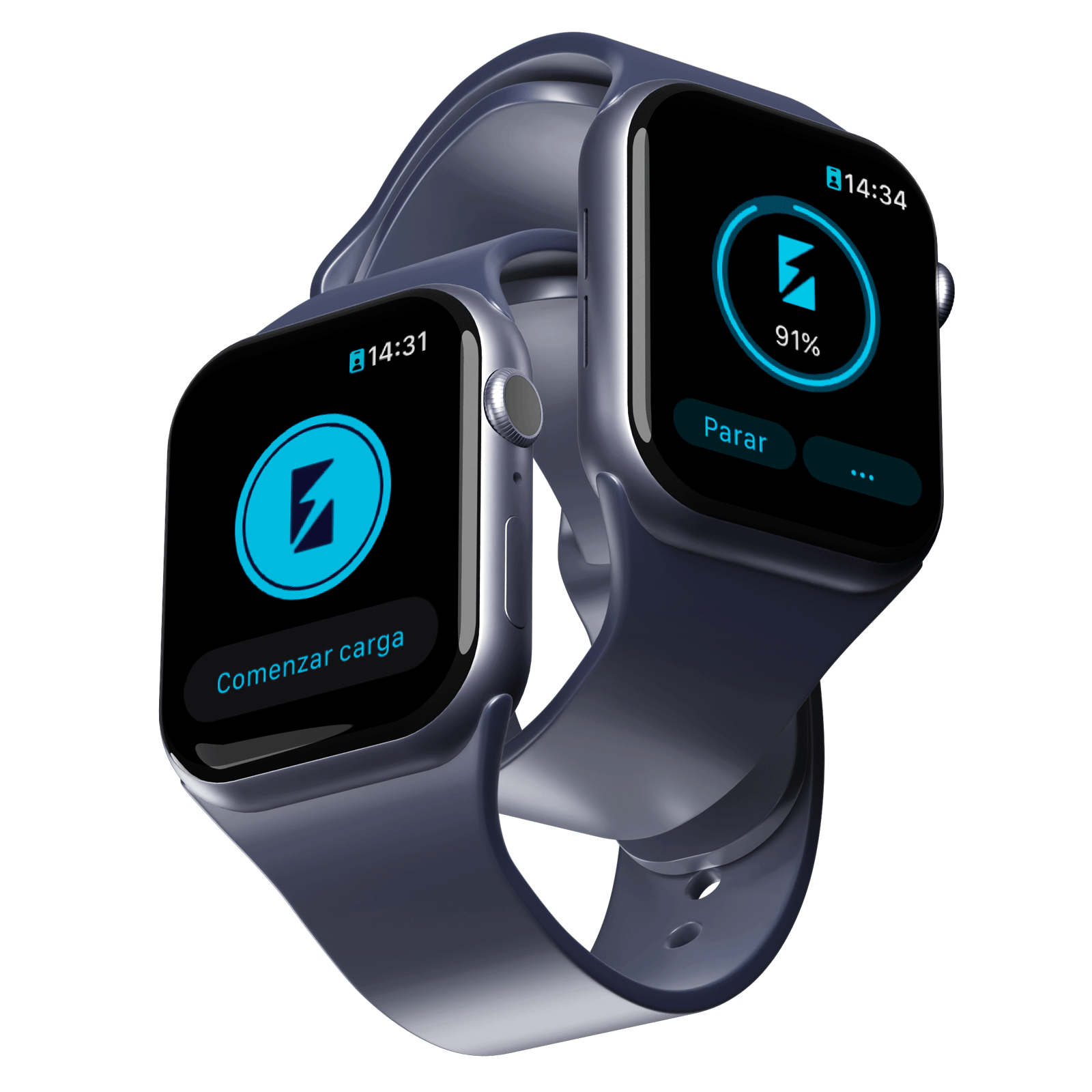 O seu Apple Watch indica-lhe quando pode conectar o veículo e iniciar o seu carregamento. Durante o processo de carregamento, poderá aceder a todas as métricas e terminar a sua sessão clicando em "Parar".